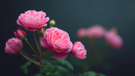 This stunning image features beautiful pink roses flowering elegantly, captured in soft light, embodying a tranquil natural beauty ideal for gardens and floral themes.