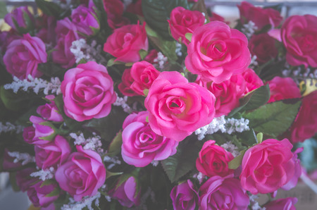 Pink Rose handmade Beautiful Artificial bouquet flowers decoration ornamental background in vintage classic tone color for greeting card or celebration event design Retro, fabric and plastic, Valentine Day, love symbol