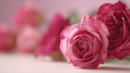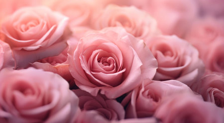 A stunning close-up of pink roses set against a soft background, perfect for conveying themes of romance, beauty, and tranquility in various projects.