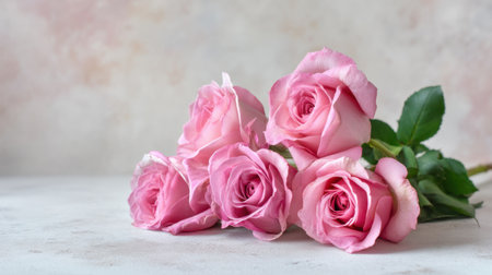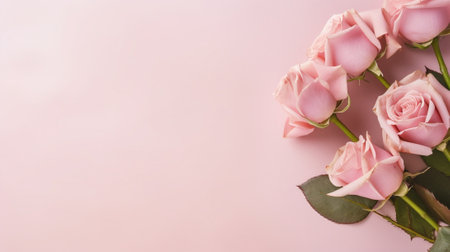 A beautiful arrangement of soft pink roses on a light background, creating a serene and romantic atmosphere, ideal for a variety of creative projects and occasions.
