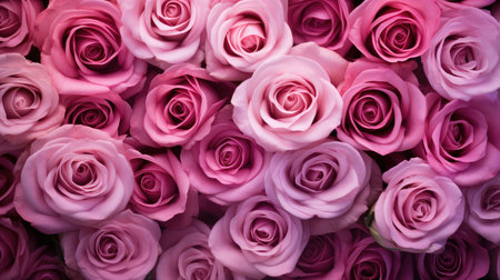 Generative AI : Rose flowers on pink background Top view Copy space