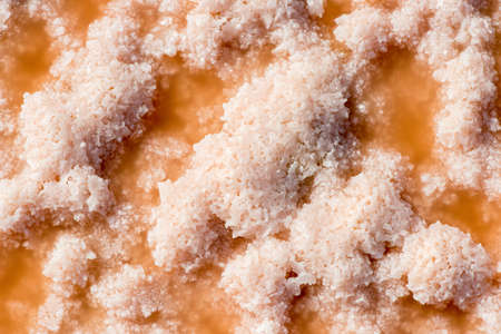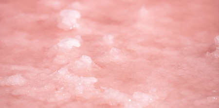 Pink salt cristales. Natural pink salt lake texture. Salt mining. Extremely salty pink lake, colored by microalgae with crystalline salt depositions