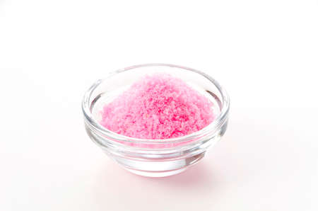 bowl of pink bath salt - beauty treatment