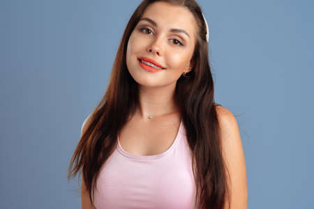 Beautiful fresh girl with perfect skin, natural make-up. Beauty face. Photo taken in the studio.