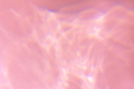 Beautiful lights and shadows of glass on pink or purple background. Overlay mode. Caustic effect of light. Sun hard reflection. Shadows texture. Blurred water backdrop. Top view. Trendy concept