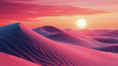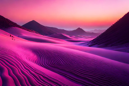 irridescent pink and blue surreal Sand dunes in the desert at sunset. abstract wavy landscape background ,infrared photography ai render illustration