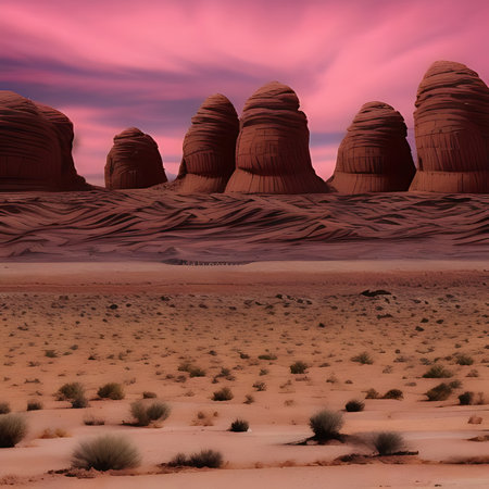 Vibrant desert landscape with ruby sand and pink wildflowers
