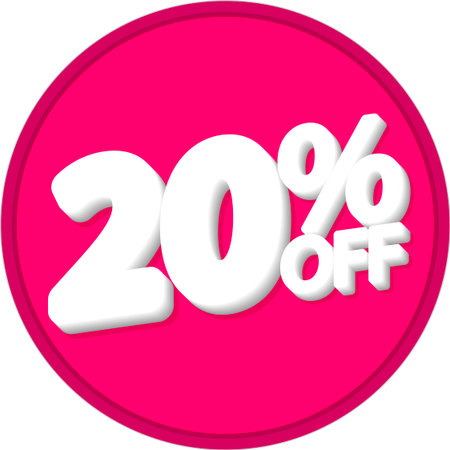 White '20% OFF' Text on a Hot Pink Round Paper Note. White Background