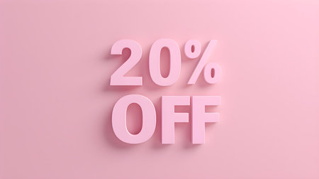 Light Pink '20% OFF' Promotional Sign on a Light Pink Background with Copy Space