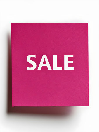 White 'SALE' Text on a Magenta Square Paper Note. White Background