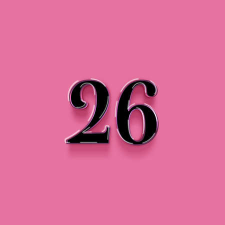 Metal number 26 on a pink background with shadow. 3d illustration