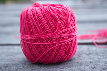 pink thread on the table, on nature background