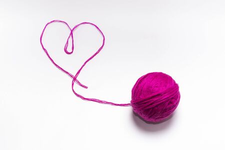 wool skein pink with a thread in the shape of a heart on a white background.