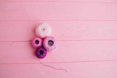 Different sewing threads on pink background