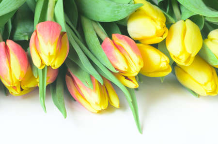 spring tulips on white background
