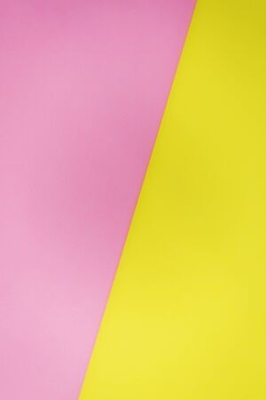 Yellow and pink colors pastel paper. Diagonal color arrangement. Bright colored background with free space for text