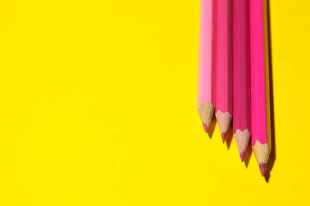 Pink pencils on a bright yellow background with a harsh shadow. space for text