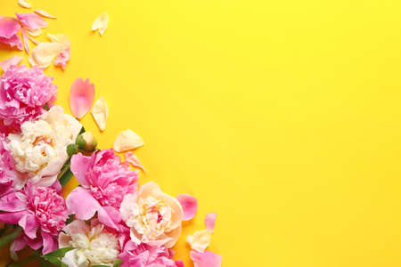 Beautiful peonies on color background