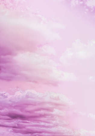 Pink sky and small clouds below. sweet pink background concept