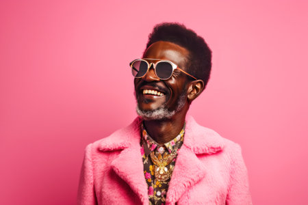 Exuberant style meets radiant joy in this vivid portrait. Perfect for a burst of positivity and sleek fashion vibes. Joyful Fashion