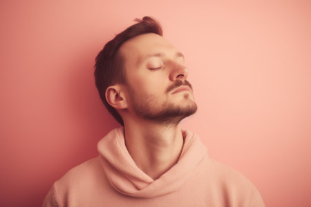 Portrait of a young man with closed eyes on a pink background
