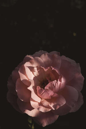 Beautiful pink rose in the garden on a dark background. Selective focus.