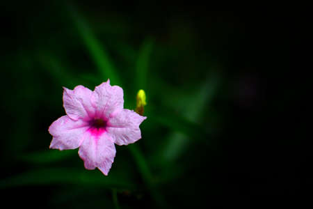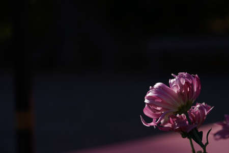 Bright bloom pink flower in blur dark background. Text space composition.