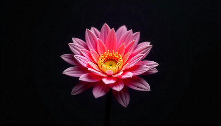 Pink flower with yellow center isolated on black background