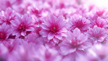 Vibrant pink flowers bloom in a sunny garden showcasing natures beauty in full spring splendor