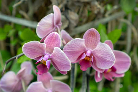 Beautiful pink orchids in the garden. Nature background.