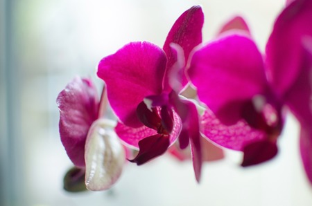 Bright beautiful spring flower orchid on the background of nature and white light
