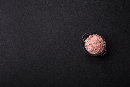 Pink sea salt close-up. The texture of salt crystals. The background is made of natural ingredients. Anti-cellulite salt for spa treatments. Body skin care.