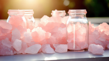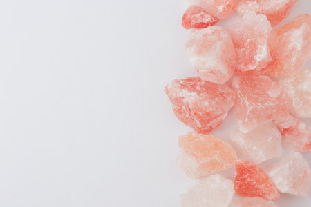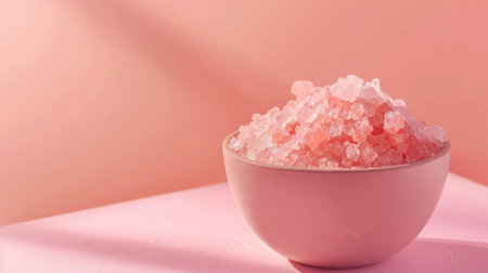 Elegant display of Himalayan pink crystal salt on a minimalist background, ideal for spa, health, and wellness-themed designs