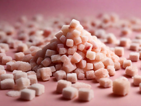 AI Generated. closeup of a pile of pink sugar crystals cake decor from above