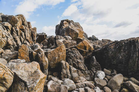 Beautiful and wild rocky coast of France in vintage retro tones, vintage landscape of coastline of France