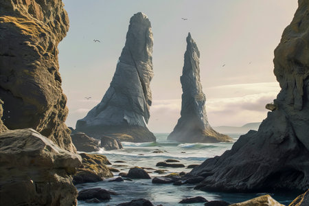 AI Generated. A landscape dotted with enormous stone spires that hum with an eerie, low frequency