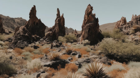 mesmerizing image jagged rock on empty field generative ai.