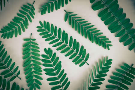 Freshness green leaves of young tamarind plant on white background isolated .The evergreen leaves are alternately arranged and pinnately lobed. The leaves are bright green. Sensitive focus background