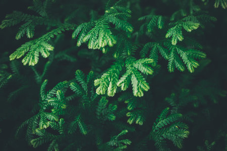 The abstract nature dark green background tropical leaves, the leaf of a pine tree.