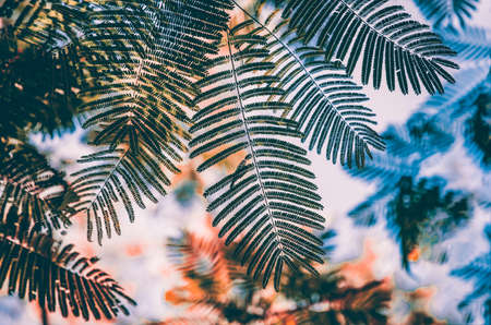 Close-up of Leaves of The Flame tree (Delonix regia (Hook.) Raf.). Green leaf background concept. Natural environment wallpaper.