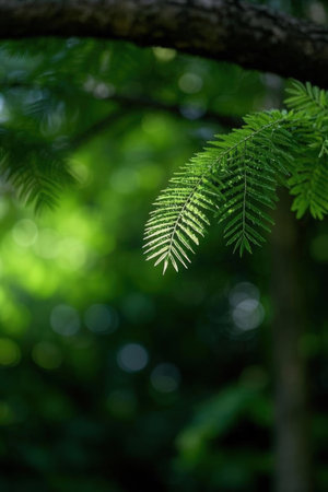 Beautiful ferns leaves green foliage againts shallow depth of field background in nature. selective focus shot