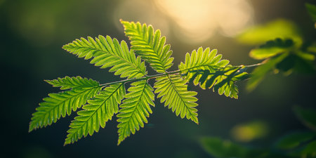Sun-Kissed Fern Vibrant Green Leaves Backlit by a Warm Sun, Close-Up, Nature s Beauty