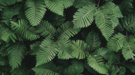 Dark green fern leaves. Fern leaf pattern. Tropical foliage. Natural abstract wallpaper. Nature background