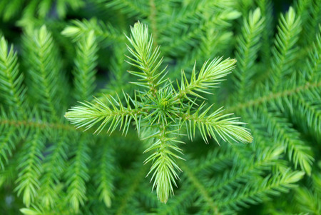 Abstract Norfolk Island pine background, closeup selective soft focus