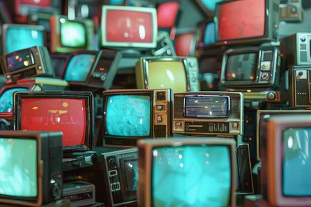 Explore a vibrant assembly of retro televisions in a colorful home setting capturing nostalgic vibes.