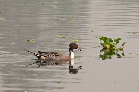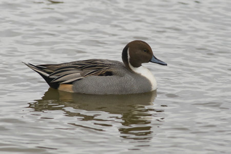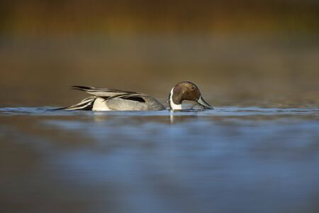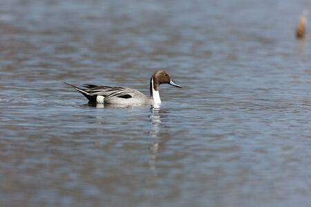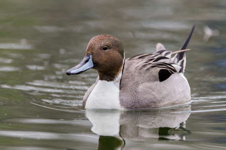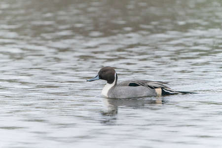Northern pintail, Anas acuta, swimming in a lake.