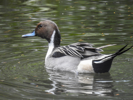 A view of male Pintail swimming in the lake. Vancouver BC Canada