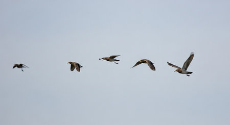 Flying migratory birds (ducks, geese, swans)