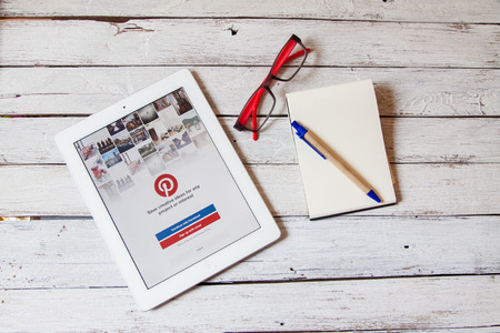 Simferopol, Russia - September 13, 2014: Pinterest the social Internet service, photo hosting allowing users to add images to thematic collections.
