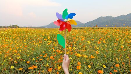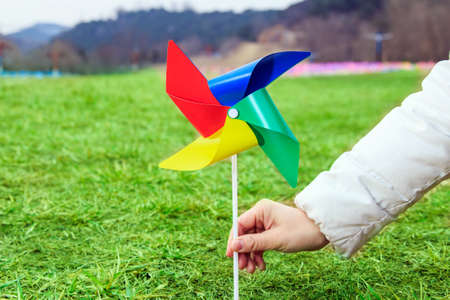 colorful windmill toys is waiting for the wind